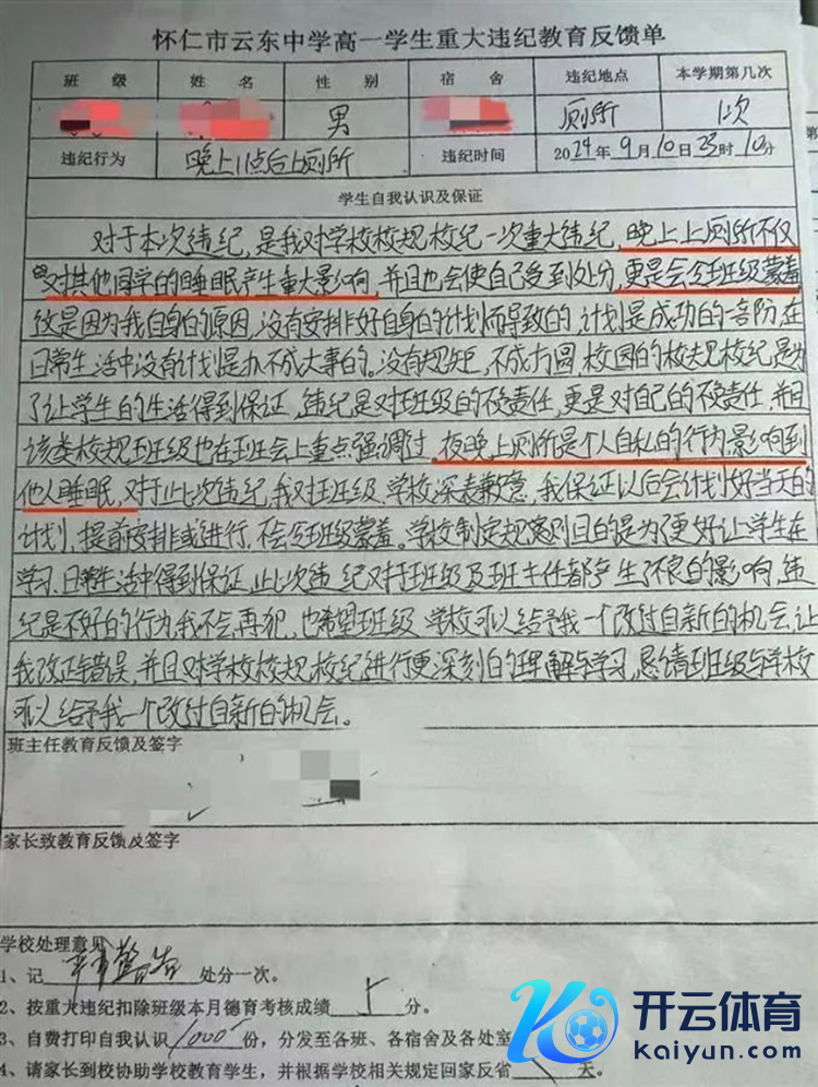 “晚上上茅厕不仅对其他同学的寝息产生首要影响……更是会令班级蒙羞”“夜晚上茅厕是个自利的作为,影响到他东说念主寝息”……近日,山西一高中学生因夜晚上茅厕被定违法,并写下了这么的“自我走漏及保证”,激励社会热议。