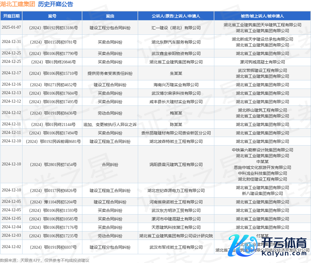本站音信,把柄天眼查APP裸露,近日公布了一则湖北省工业建筑集团有限公司动作被告/被上诉东说念主的开庭公告,详备本色如下: