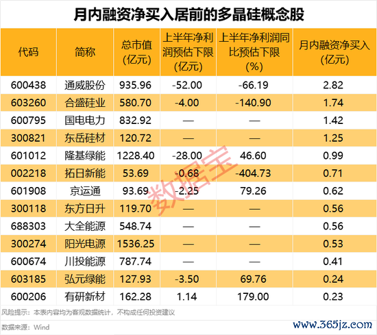 从资金面来看,受益于期货握续高涨,大大批多晶硅办法股得到市集资金的暖和,通威股份、合盛硅业、国电电力、东岳硅材月内获融资净买入居前,均超1亿元。