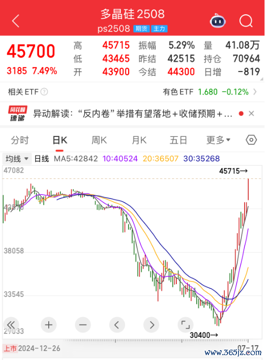 事实上,自7月以来,跟着“反内卷”计策预期扰动,市集看厚心思徐徐发酵,此前跌破行业资本线的多晶硅期货低位反弹。现在多晶硅期货仍是纠合四根周线收涨,区间累计涨幅超44%。