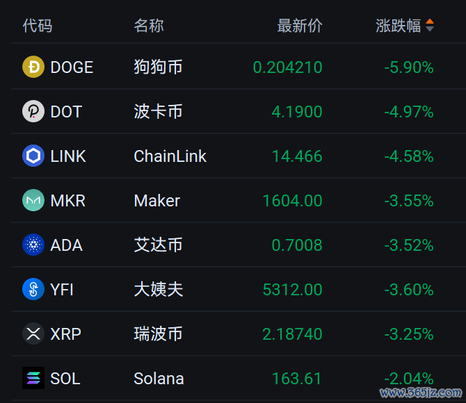 另外,其他数字货币更是暴跌。狗狗币跌近6%。