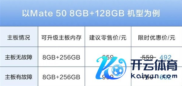 以Mate 50 8+128GB为例,主板如若莫得故障,升级为8+256GB仅需492元,主板有故障的话需要692元,比原价的659元、909元优惠了好多。