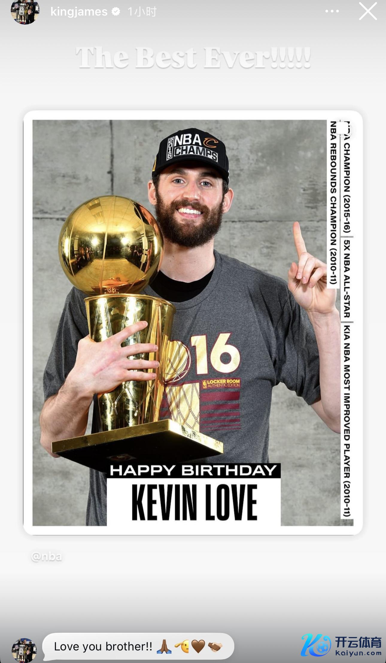 雷速体育9月8日讯 湖东说念主球星詹姆斯当天更新了酬酢媒体,转发了前队友乐福的生辰动态,并配文暗示:“史上最好!爱你好伯仲!”